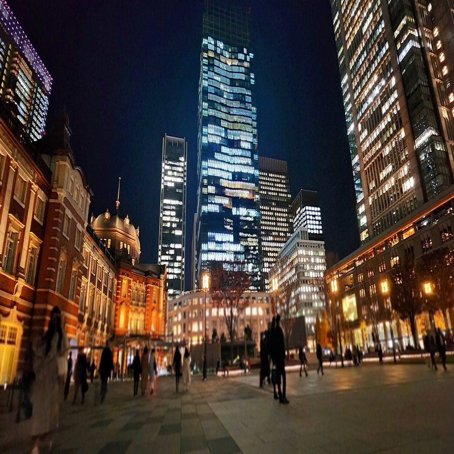 なので私も、東京駅の夜景を背景に入れてみましたよ。