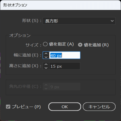 以下のように長方形オプションに数値を入力していきます。