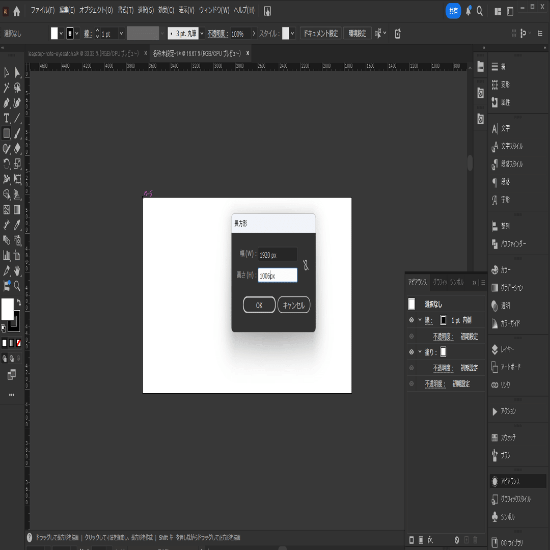 長方形ツールで1920×1006のサイズを作る。