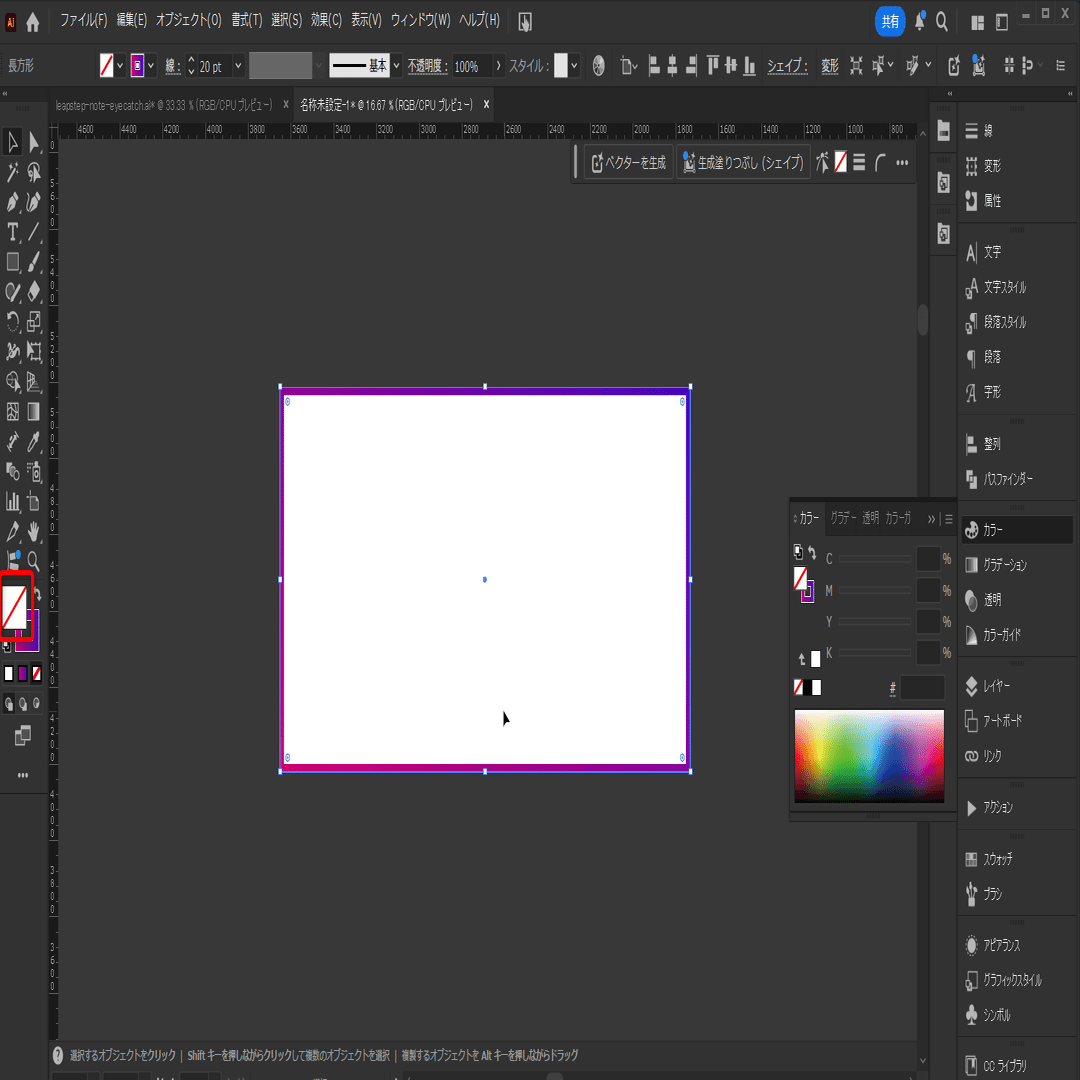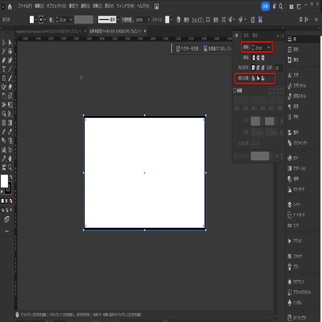 線の太さを20ptにし、線の位置を「内側に揃える」を選択します。