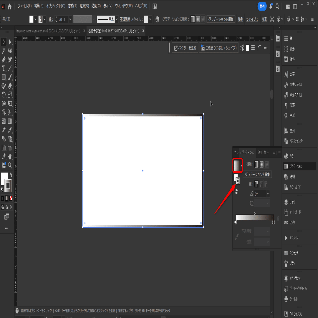 グラデーションを選択し、赤枠で囲っているグラデーションを適用します。