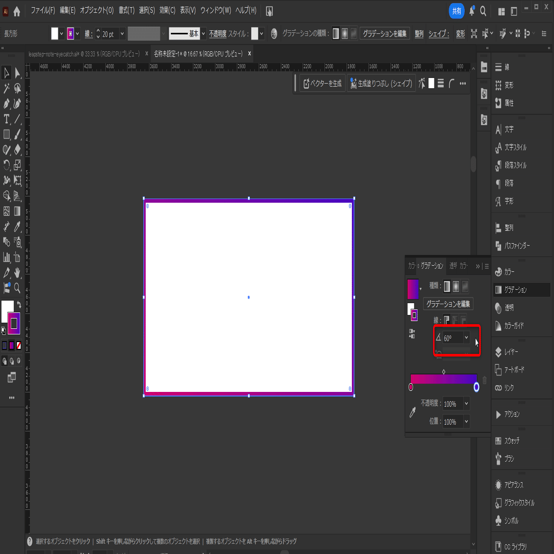 ※今回は説明しませんが、このグラデーションのデータをスウォッチに登録しておくと、すぐ使えるようになるので楽です。