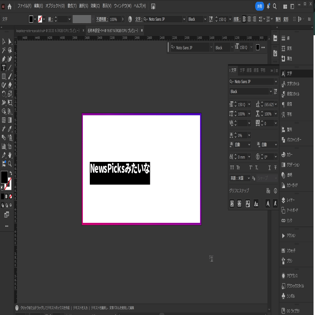 (フォント:Noto Sans JP サイズ:150Qで設定しています。)