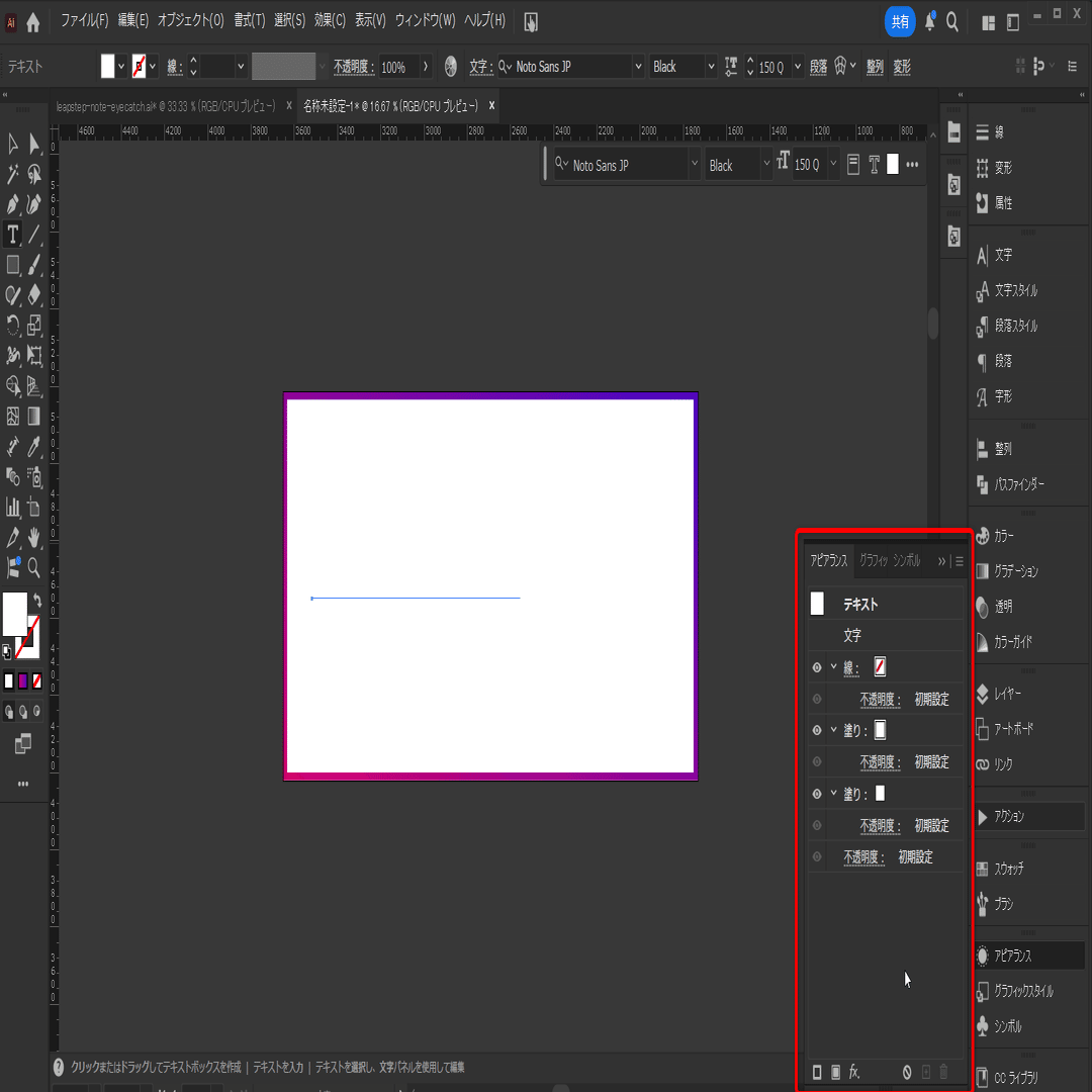 アピアランスを選択し、下図のように塗りを二つ設定します。