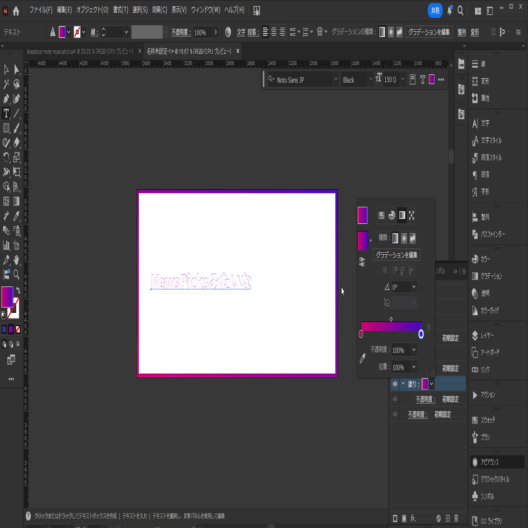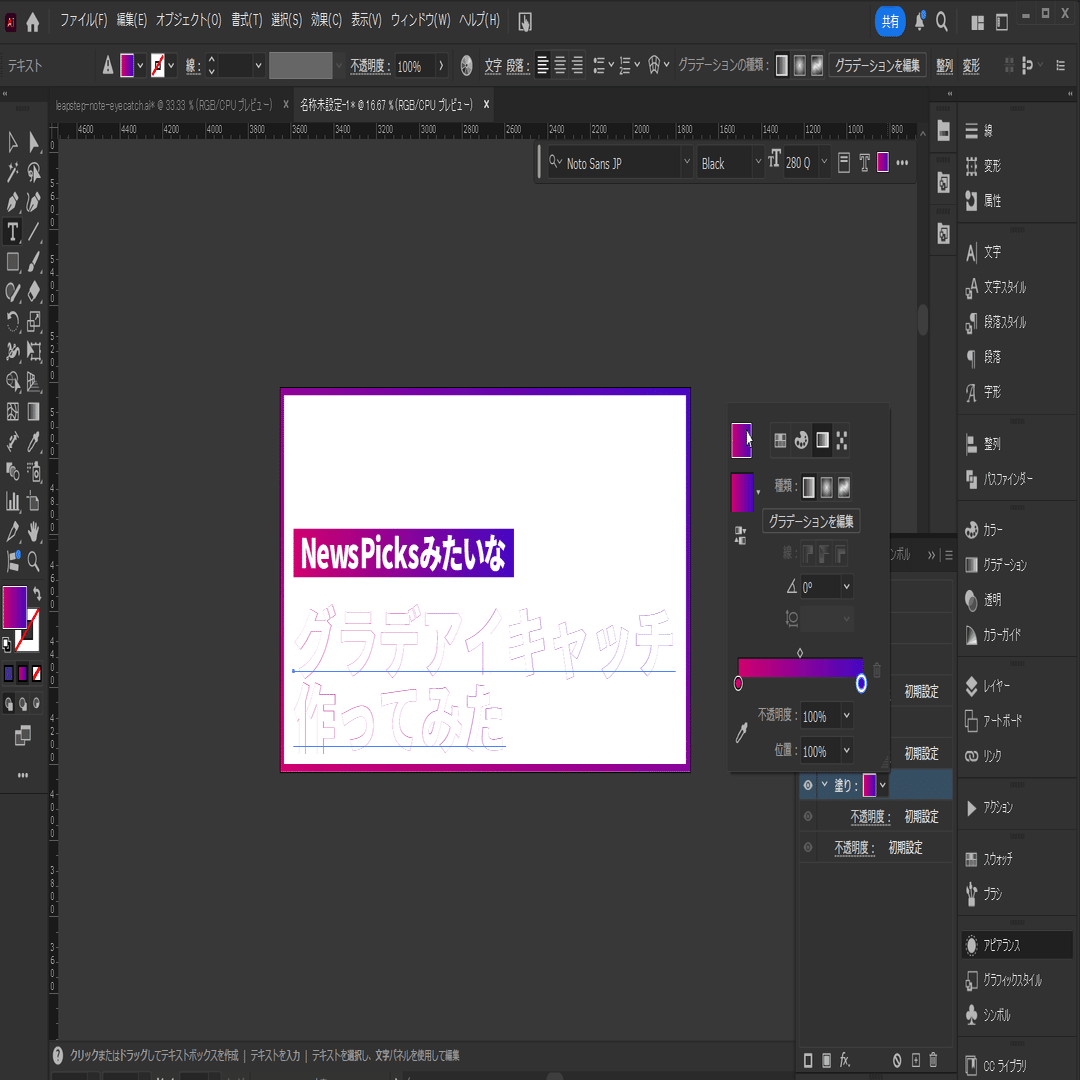 ここではタイトル(アウトライン)のグラデーションのやり方を詳しく説明します。