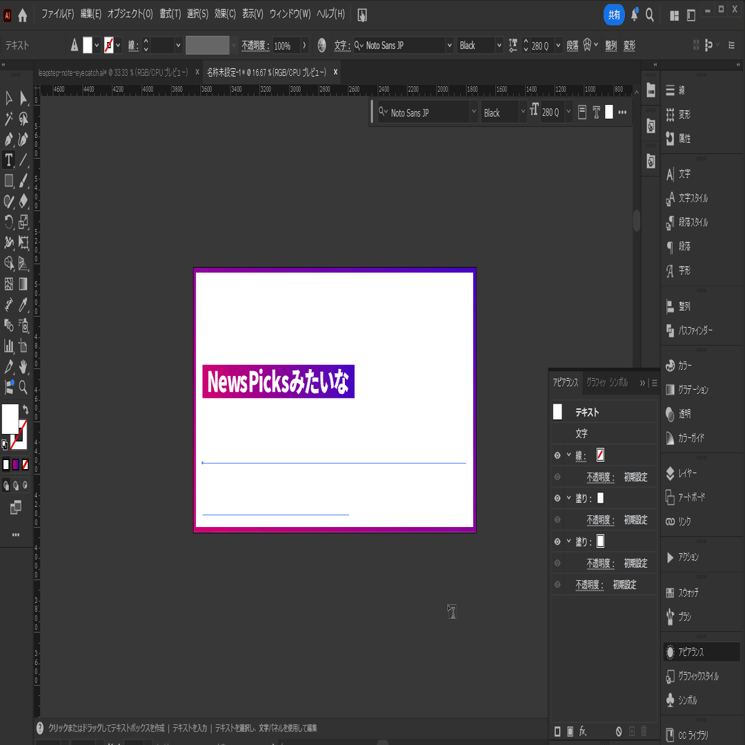 (フォント:Noto Sans JP サイズ:280Qで設定しています。)
