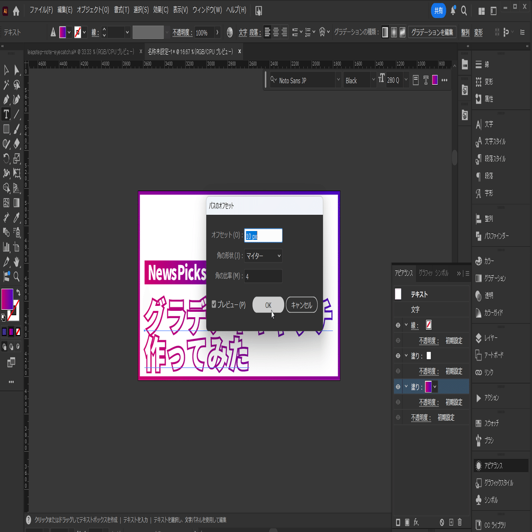 アピアランス(パスのオフセット)